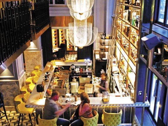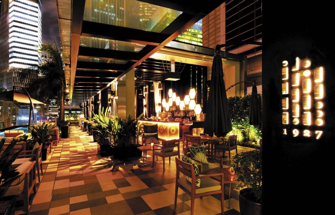 Perched on the sixth floor of the SO Sofitel Singapore, 1927 rooftop pool bar offers designer cocktails and casual bar bites beside the pool and in relaxed lounge seating. Bartenders discuss customer likes and dislikes before suggesting suitable cocktails from a range that is focused on the equatorial setting and classical or contemporary styles. Guests choose drinks and snacks from a menu written as historic telegrams (the hotel is located in an old telegraph office that was built in 1927). Glitzy cocktails include Pain Killer (dark rum, pineapple juice, coconut cream and orange juice) and Absinthe Colada (St. George absinthe, agricole, crème de menthe, coconut and pineapple). Patrons can also choose tempting bar bites such as ceviche, beef tartare, charcuterie platter and a cheese platter. The bar offers a glistening urban backdrop while the petite infinity pool is ideal for soaking or for poolside partying. The city’s colourful lights reflect off the alluring pool and gentle breezes flow through the open-air pool deck to create a memorable ambiance.